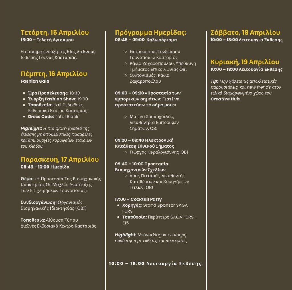 Η Διεθνής Έκθεση Γούνας Καστοριάς, εδώ και δεκαετίες, αποτελεί θεσμό που προάγει την τοπική παραγωγή, ενισχύει τη διεθνή εμπορική δραστηριότητα και αναδεικνύει την τεχνογνωσία και τη δημιουργικότητα που χαρακτηρίζουν την περιοχή.